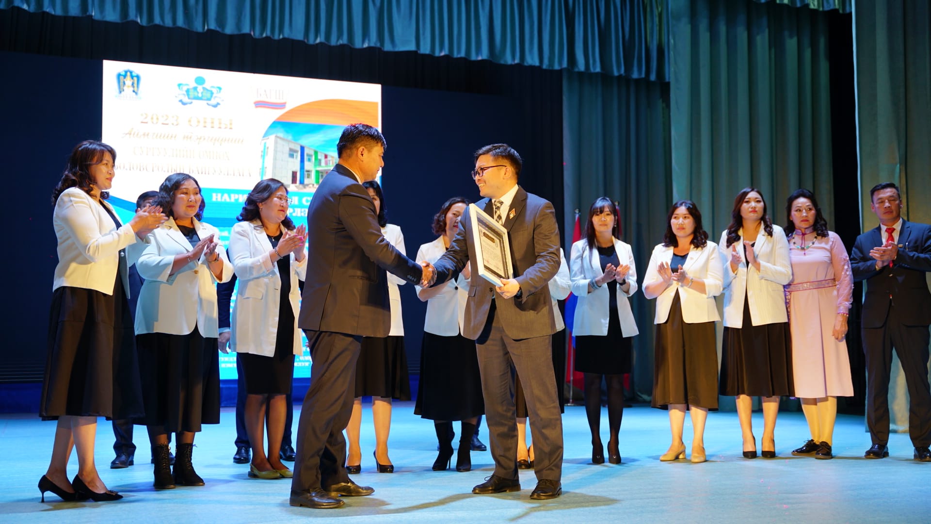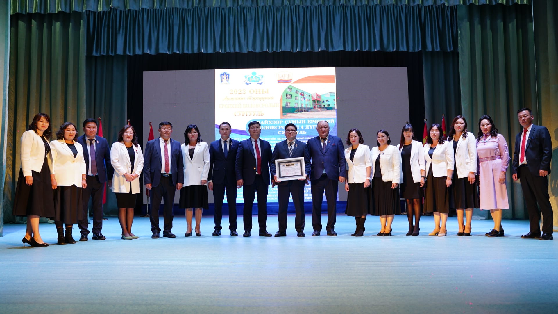 2022-2023 оны хичээлийн жилд хийж хэрэгжүүлсэн үйл ажиллагаа, түүний үр дүнгээрээ сургууль маань "АЙМГИЙН ТЭРГҮҮНИЙ СУРГУУЛЬ"-иар шалгарч баярын хүндэтгэлийн хурал дээр батламжаа гардаж авлаа.