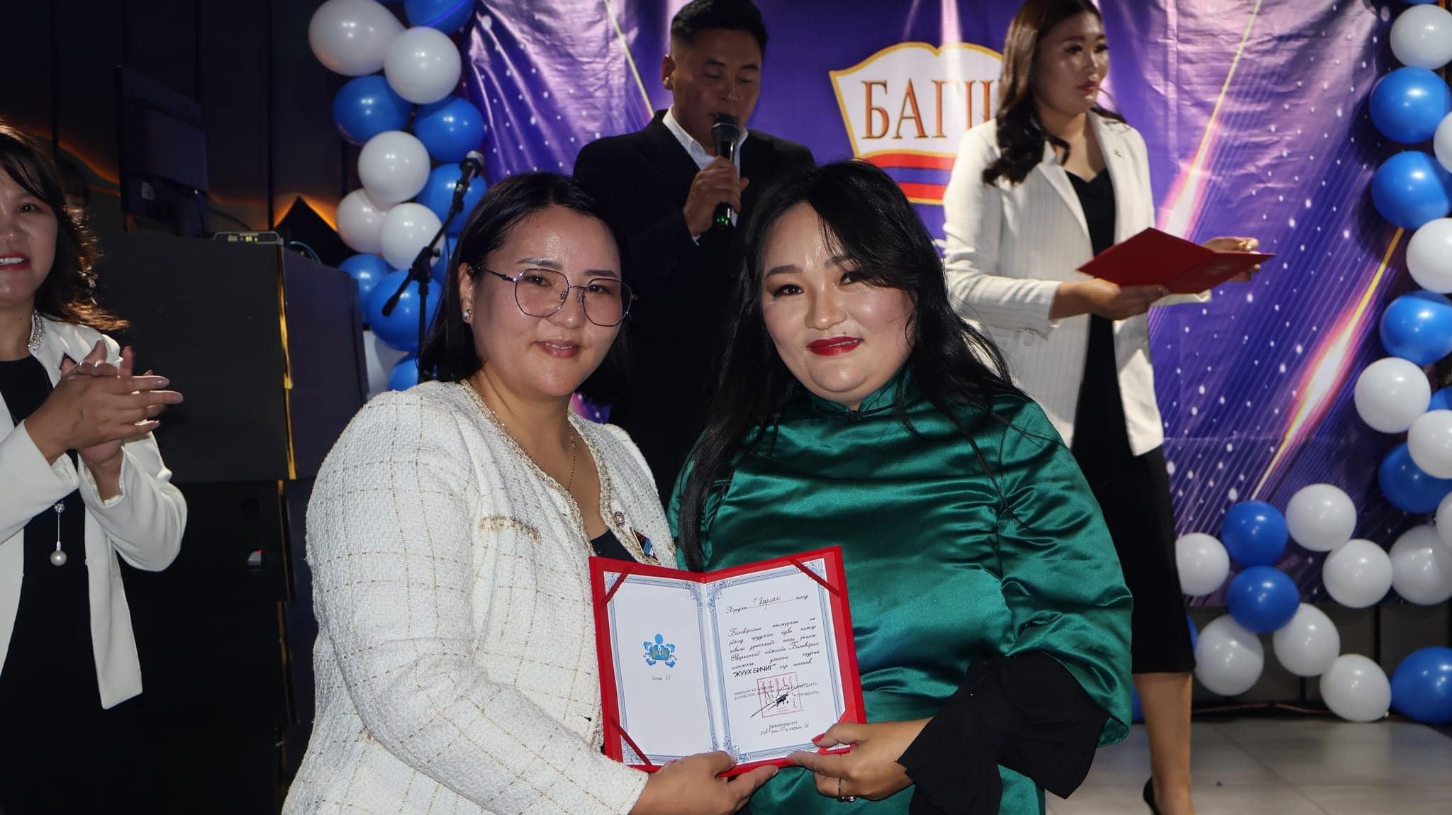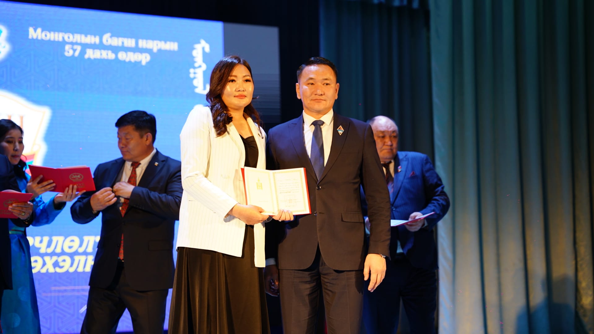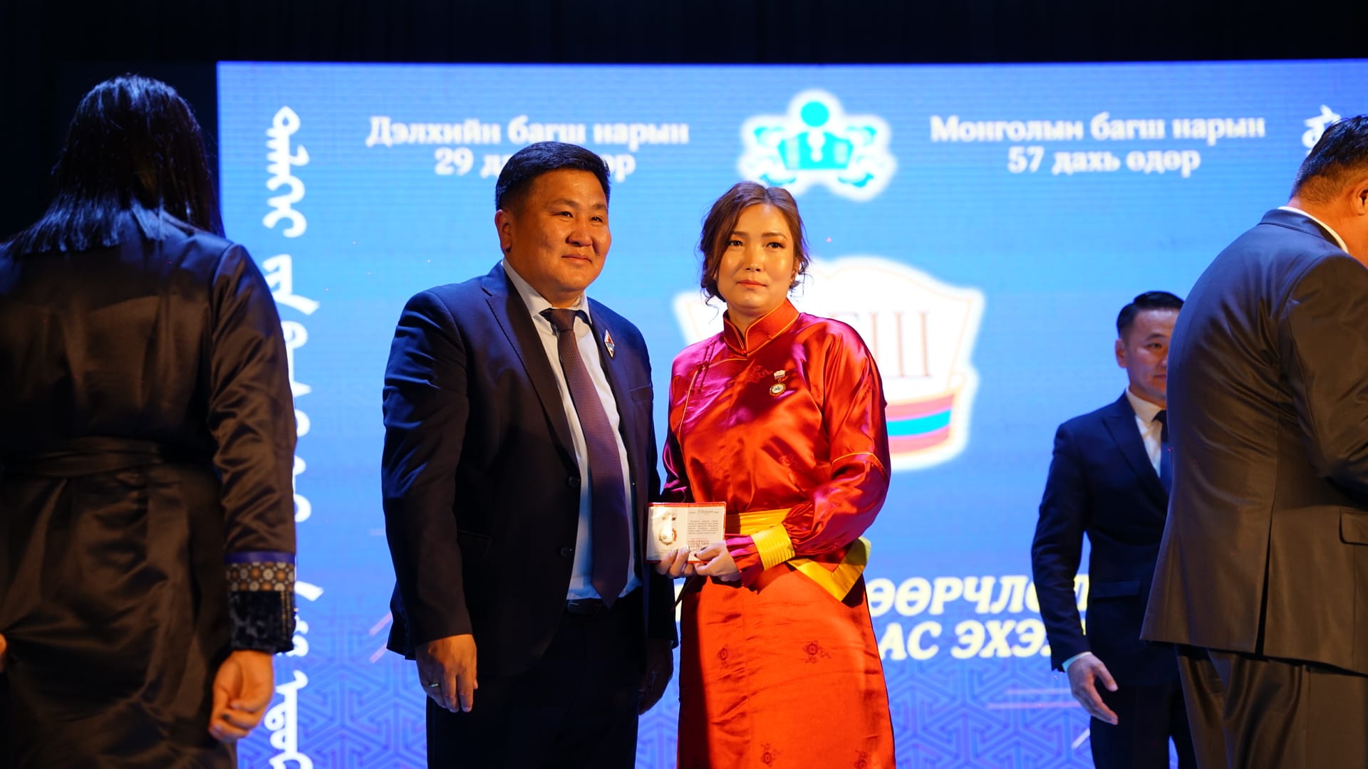Засгийн газрын шагнал “Боловсролын тэргүүний ажилтан” цол тэмдгээр математикийн багш Э.Ариунтуяа, бага ангийн багш А.Ганчимэг