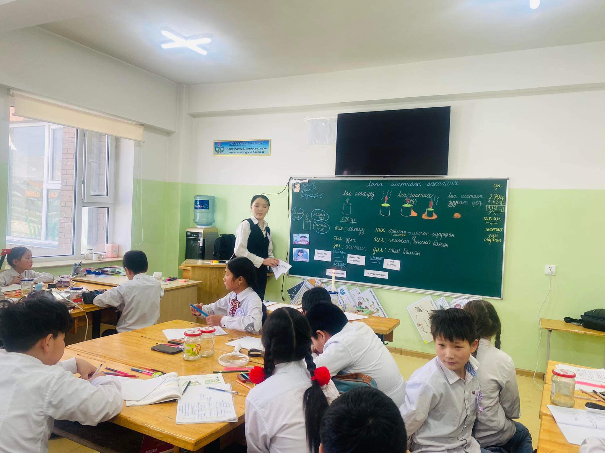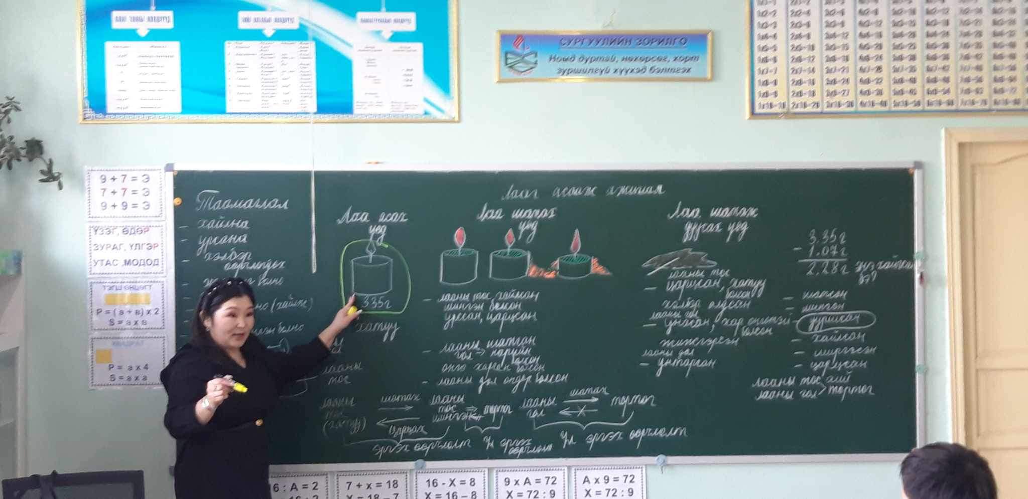 <p style="margin-left:0px;"><span style="color:var(--primary-text);">Байгалийн ухааны хичээлээр суралцагчдын илэрхийлэх чадварыг хөгжүүлэх төслийн хүрээнд 2024 оны 02 сарын 14, 15-ны өдрүүдэд</span></p><p style="margin-left:0px;"><span style="color:var(--primary-text);">4-р анги “Хатуу, шингэн хий” нэгж хичээлийн онол, арга зүй, үнэлгээ (Хатуу, шингэн, хийн хэлбэр, шахагдах шинж)</span></p><p style="margin-left:0px;"><span style="color:var(--primary-text);">5-р анги “Цаг агаар ба уур амьсгал" нэгж хичээлийн онол, арга зүй, үнэлгээ”, “Цахилгаан дамжуулагч ба тусгаарлагч”нэгж хичээлийн онол, арга зүй, үнэлгээ сэдэвт сургалтыг бага ангийн 25 багш, 2 сургалтын менежер, байгалийн ухааны мэргэжлийн багш нарын дунд зохион байгууллаа.</span></p><p style="margin-left:0px;"><span style="color:var(--primary-text);">Мөн 2024 оны 02 сарын 19-нөөс 02 сарын 23-ны хүртэл 4-р анги “Зай ашиглан чийдэн асаая”</span></p><p style="margin-left:0px;"><span style="color:var(--primary-text);">5-р анги “Лаа шатахад ямар өөрчлөлт явагдах вэ?” сэдэвт судалгаат хичээлийг бэлтгэн багш Д.Наранцэцэг, Ц.Лхагвасүрэн, Т.Дулам, Б.Дэлгэрсайхан, Б.Эрдэнэтуяа, М.Жаргалмаа, И.Гэрэлмаа, М.Жаргалсайхан, Р.Сэмжаан, О.Бүрэнжаргал нар хичээлийг заалаа. Байгалийн ухааны хичээлийг заахад багшид онол, арга зүйн асуудлыг шийдвэрлэхэд дэмжлэг үзүүлэн ажилласан төслийн мэргэжилтэн Э.Мөнхзул багшдаа талархал илэрхийлье.</span></p>