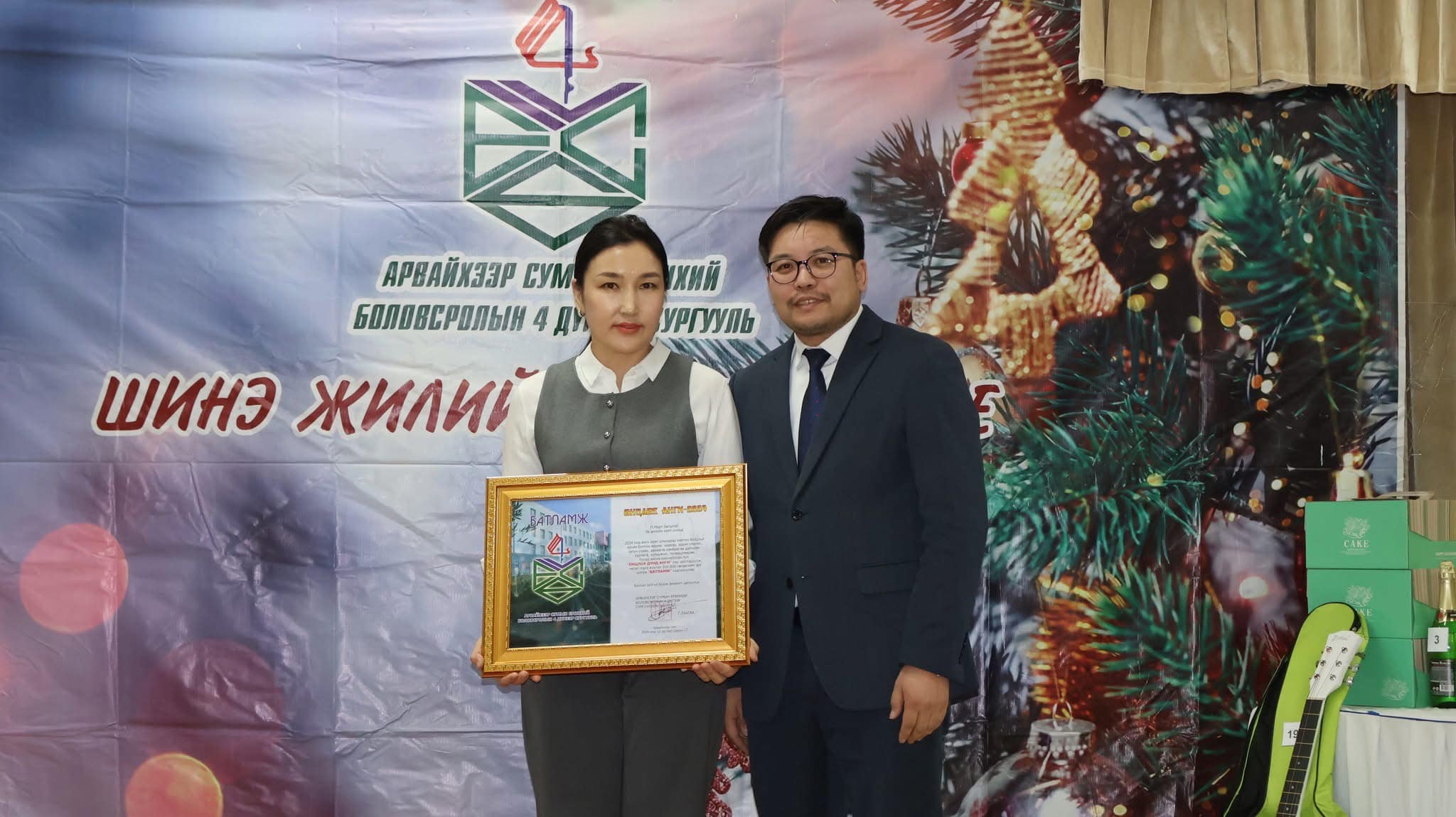 -Мөн 2024 онд ажилдаа чин сэтгэлээсээ хандаж, хичээл зүтгэл гаргаж ажилсан Сургалтын зохицуулагч Б.Отгонсар, англи хэлний багш Б.Туяадэлгэр, бага ангийн багш Б.Эрдэнэтуяа, цахилгаанчин Р.Ганболд, архив бичиг хэргийн ажилтан М.Мөнгөнсүх, нярав М.Ичинхорлоо нарыг байгууллагын өргөмжлөлөөр тус тус шагнагдлаа.