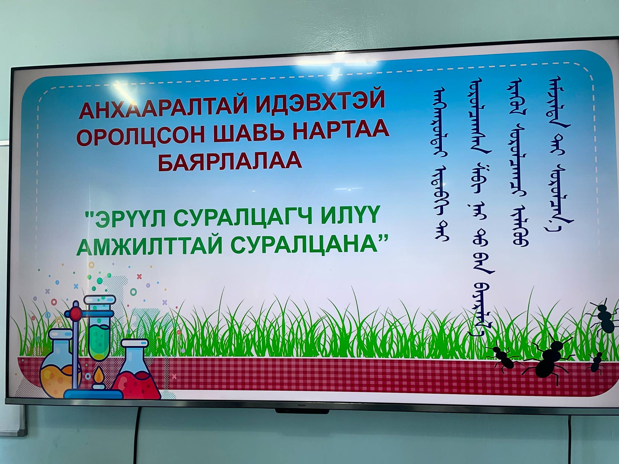 1-р байр: Биологи, эрүүл мэндийн багш П.Оюундалай 6-7-р ангийн сурагчдын бие даан ажиллах чадварыг нэмэгдүүлэх МХБ.